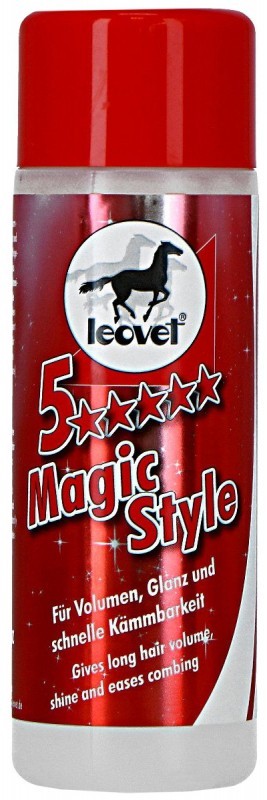 Magic Style is een gel met vitaminen en actieve vochtinbrengers voor een verbeterde haarstructuur. Hierdoor krijgen de staart en manen meer volume, glans en een goede doorkambaarheid. Manen en staart blijven dagenlang glanzend, soepel en los. Verkrijgbaar in verpakking van 200 ml.