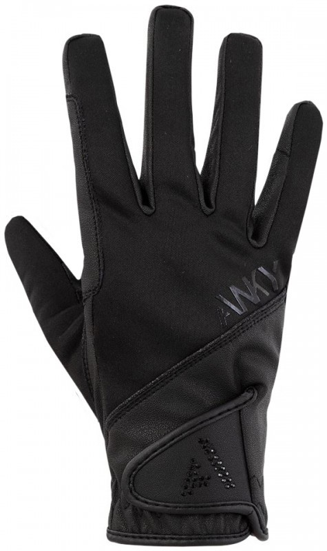 Comfortabele en warme rijhandschoen van Softshell met een klittenbandsluiting. De Softshell is elastisch, ademend en vochtregulerend. De rijhandschoen is gevoerd met warme Thinsulate-fleece en is winddicht. Thinsulate zorgt voor een perfecte warmte-isolatie, waardoor uw handen op temperatuur blijven. De handpalm van de rijhandschoen is gemaakt van sterk en soepel kunstleder met anti-slip voor optimale grip met de teugel. Aan de bovenkant heeft de rijhandschoen een glinsterend biesje en een glinsterend Anky-logo. De duim en de wijsvinger zijn smartphone compatible. Per paar verpakt. Machinewasbaar (30°C). Verkrijgbaar in de kleur black.
