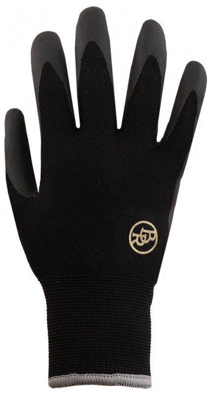 Elastische werk/rijhandschoen met extra grip. Door het nitrile foam bij de palm van de hand en de vingers is de handschoen aan de binnenkant goed waterafstotend en heeft deze tevens een goede grip in iedere weersomstandigheid. De handschoen is geschikt als werkhandschoen in en om de stal of te gebruiken tijdens het longeren en paardrijden. Voorzien van een BR-logo op de handrug. Machinewasbaar. Verkrijgbaar in de kleur black.