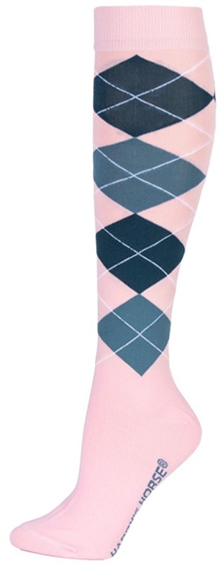 Comfortabele kniekous met een trendy ruit-motief. Het zachte voetbed zorgt voor extra comfort in uw rijlaarzen of rijschoenen. Vervaardigd van 15% katoen, 80% polyester en 5% elasthan. Machinewasbaar. Verkrijgbaar in de kleur pink.