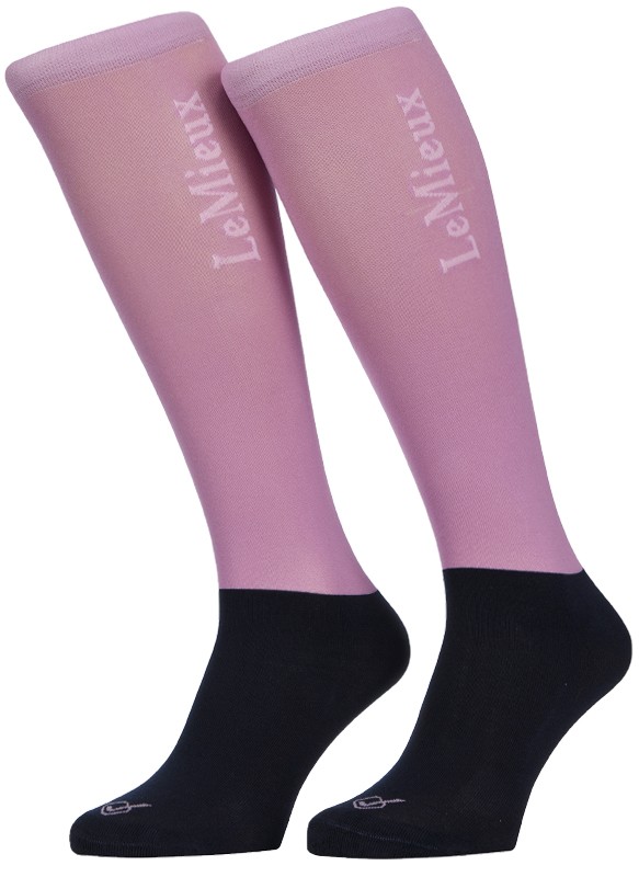 Comfortabele kniekous met dun panty-materiaal rondom de kuit. Hierdoor draagt de kniekous comfortabel in rijlaarzen en is het gemakkelijker om in- en uit de rijlaarzen te stappen. De kniekous heeft een verstevigd voetbed en draagt daardoor aangenaam. De kniekous is tevens zacht bij de enkels om drukplekken te voorkomen. Aan de bovenkant bevindt zich een LeMieux-logo. Vervaardigd van 42% nylon, 28% katoen, 28% polyester en 2% elasthan. Per 2 paar verpakt. Machinewasbaar. Verkrijgbaar in de kleur mallow.
