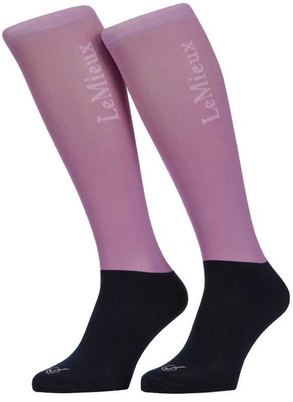 Comfortabele kniekous met dun panty-materiaal rondom de kuit. Hierdoor draagt de kniekous comfortabel in rijlaarzen en is het gemakkelijker om in- en uit de rijlaarzen te stappen. De kniekous heeft een verstevigd voetbed en draagt daardoor aangenaam. De kniekous is tevens zacht bij de enkels om drukplekken te voorkomen. Aan de bovenkant bevindt zich een LeMieux-logo. Vervaardigd van 42% nylon, 28% katoen, 28% polyester en 2% elasthan. Per 2 paar verpakt. Machinewasbaar. Verkrijgbaar in de kleur mallow.