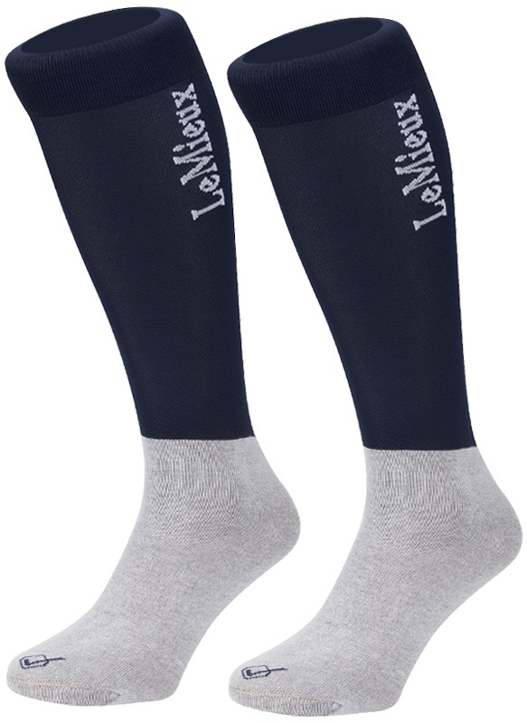 Comfortabele kniekous met dun panty-materiaal rondom de kuit. Hierdoor draagt de kniekous comfortabel in rijlaarzen en is het gemakkelijker om in- en uit de rijlaarzen te stappen. De kniekous heeft een verstevigd voetbed en draagt daardoor aangenaam. De kniekous is tevens zacht bij de enkels om drukplekken te voorkomen. Aan de bovenkant bevindt zich een LeMieux-logo. Vervaardigd van 42% nylon, 28% katoen, 28% polyester en 2% elasthan. Per 2 paar verpakt. Machinewasbaar. Verkrijgbaar in de kleur navy.