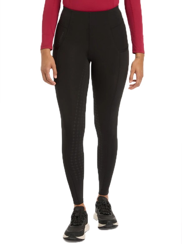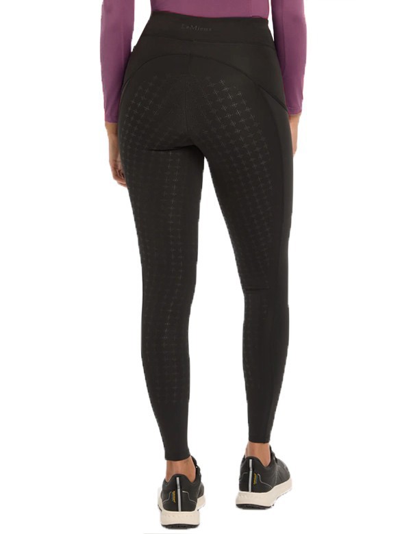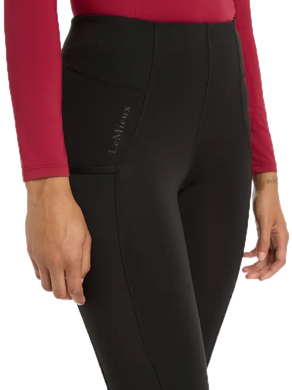 Comfortabele pull-on rijbroek met een brede, elastische tailleband zonder voorsluiting. Hierdoor kan de rijbroek goed aansluiten en het zorgt aan de voorkant voor meer bewegingsvrijheid en comfort. De rijbroek is voorzien van een elastische anti-slip zit. De anti-slip zit is extra stroef en flexibel en zorgt voor extra grip en dus een stabielere zit tijdens het rijden. Op beide benen bevindt zich een zakje voor bijvoorbeeld uw smartphone. Op het rechterbeen en aan de achterkant op de band heeft de rijbroek een subtiel LeMieux-logo. Vervaardigd van 70% polyester en 30% elasthan. Hoog model. Machinewasbaar. Verkrijgbaar in de kleur black.