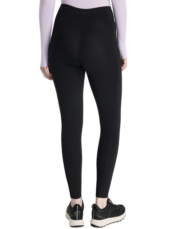 Warme tights met een brede, elastische tailleband zonder voorsluiting. Hierdoor kan de rijbroek goed aansluiten en het zorgt aan de voorkant voor meer bewegingsvrijheid en comfort. De rijbroek is elastisch en zacht aan de binnenkant voor extra warmte en comfort. De Nell is voorzien van een elastische anti-slip zit. De anti-slip zit is extra stroef en flexibel en zorgt voor extra grip en dus een stabielere zit tijdens het rijden. Op beide benen bevindt zich een zakje voor bijvoorbeeld de smartphone. Op het linker zakje en aan de achterkant op de tailleband bevindt zich een LeMieux-logo. Vervaardigd van 72% polyester en 28% elasthan. Machinewasbaar. Verkrijgbaar in de kleur black.