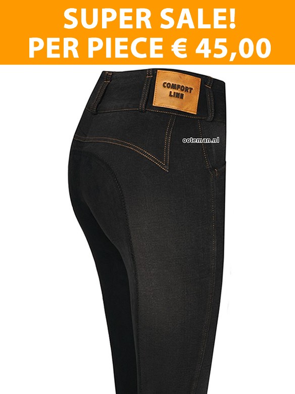 Chique model rijbroek met optisch hoge band, elastische kunstleder zit en Stretch-beenafsluiting. De voorsluiting is voorzien van drie schuifknoopjes. De grote riemlussen en contrasterende stiksels maken de Senna extra trendy. De Stretch-beenafsluiting past optimaal om de enkel en garandeert het best mogelijke draagcomfort in de rijlaarzen. Met Comfort Line-logo bij de linker zak en een Comfort Line-badge op de brede tailleband. Vervaardigd van 73% katoen, 23% polyester en 4% elasthan en daardoor comfortabel in alle jaargetijden. Machinewasbaar. Verkrijgbaar in de kleur black.