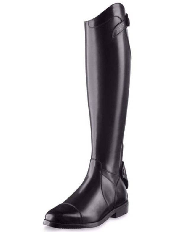 De Aries is een elegant model rijlaars gemaakt van zeer soepel volnerf leder met een rits en elastische inzet aan de achterkant. De rijlaars heeft een hoge boog van 5 cm en een rits aan de achterzijde die doorloopt tot aan de zool voor een makkelijke instap. De rits is aan de boven- en de onderkant afgewerkt met een ritsbeschermer met drukknoopsluiting. Langs de rits bevindt zich een elastische inzet die maximaal 2.2 centimeter mee rekt. Aan de binnenkant heeft de rijlaars slijtvast E-Tex. Dit materiaal zorgt voor een goede grip op het zadel. De rijlaars is leder gevoerd, heeft een doorgestikte rubber zool met anti-slip profiel en een ademend voetbed met anti-shock vulling. Door de drie spoorhouders aan de achterkant kunnen de sporen op de gewenste hoogte worden gedragen. Slank gesneden rond de enkel. Italiaans design. Verkrijgbaar in de kleur black.