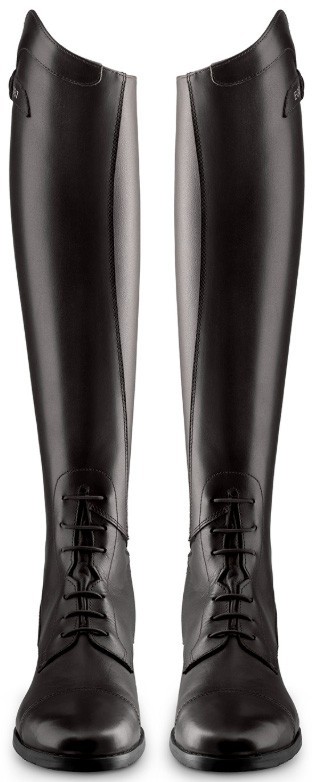 De Orion is een elegant model rijlaars gemaakt van zeer soepel volnerf leder met een elastische vetersluiting op de wreef. De rijlaars heeft een hoge boog van 5 cm en een rits aan de achterzijde die doorloopt tot aan de zool voor een makkelijke instap. De rits is aan de boven- en de onderkant afgewerkt met een ritsbeschermer met drukknoopsluiting. Langs de rits bevindt zich een elastische inzet die maximaal 2.2 centimeter mee rekt. Aan de binnenkant heeft de rijlaars slijtvast E-Tex. Dit materiaal zorgt voor een goede grip op het zadel. De rijlaars is leder gevoerd, heeft een doorgestikte rubber zool met anti-slip profiel en een ademend voetbed met anti-shock vulling. Door de drie spoorhouders aan de achterkant kunnen de sporen op de gewenste hoogte worden gedragen. Slank gesneden rond de enkel. Italiaans design. Verkrijgbaar in de kleur black.