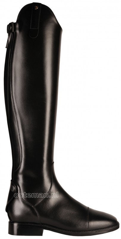 De Sydney is een comfortabel model rijlaars gemaakt van zacht en soepel Veneto-leder. De rijlaars heeft een extra hoge boog van 5 cm en een rits aan de achterzijde die doorloopt tot aan de zool voor een makkelijke instap. De rits is aan de boven- en de onderkant afgewerkt met een ritsbeschermer voorzien van drukknoopsluiting. Langs de rits bevindt zich een elastische inzet die maximaal 2 centimeter meerekt. De rijlaars is kalfsleder gevoerd, heeft een AGO-gelijmde rubber zool en het Petrie Comfort-voetbed. Extra slank gesneden rond de enkel. Met doorgestikte sierneus voor een elegante uitstraling. Verkrijgbaar in de kleur black.