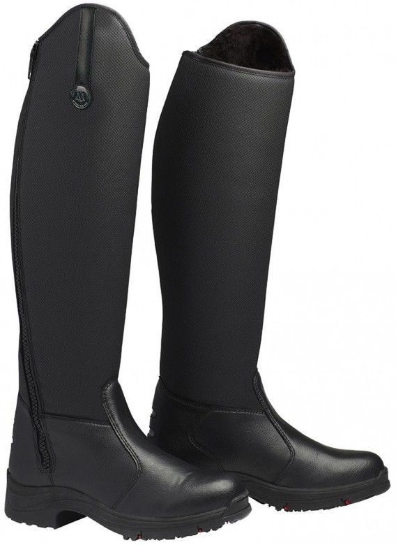 Warme thermorijlaars van kunstleder met een waterdicht voetgedeelte tot aan de rits. De rijlaars is geheel gevoerd met warm imitatie-bont en is voorzien van een hoge dressuurboog en een Mountain Horse-logo op de zijkant. De antislip-zool, het stevige soft-voetbed en het soepele voetgedeelte maken deze rijlaars extra comfortabel. De rijlaars heeft een rits aan de zijkant voor een makkelijke instap en een elastische inzet aan de achterkant voor een goede pasvorm. Voorzien van subtiele reflectie op de hak voor goede zichtbaarheid in het donker. Verkrijgbaar in de kleur black.