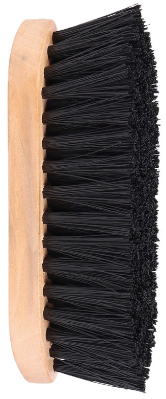 Sturdy, hard brush to remove the worst dirt from the coat, tail and mane. The top of the brush is made of wood. The brush has a length of 18 cm, the width is 6 cm and the length of the bristles is 4.5 cm. Available in the colour black.