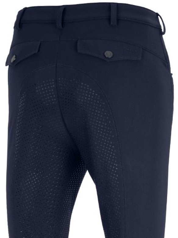 Comfortabele rijbroek voor heren met full grip zit en stijlvolle klepzakjes aan de achterkant. De full grip zit is extra stroef en flexibel en zorgt voor extra grip en dus een stabielere zit tijdens het rijden. Aan de voorkant heeft de rijbroek twee steekzakjes. Aan de achterkant op het rechter klepzakje bevindt zich een Pikeur-logo. De stretch-beensluiting past optimaal om de enkel en garandeert het best mogelijke draagcomfort in rijlaarzen. De rijbroek is vervaardigd 75% polyamide en 25% elasthan en is daardoor zeer elastisch, kleurvast, vochtregulerend, sneldrogend en daardoor comfortabel te dragen in alle jaargetijden. Machinewasbaar. Verkrijgbaar in de kleur nightblue.