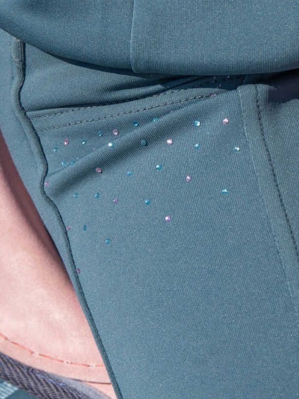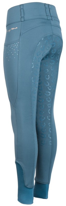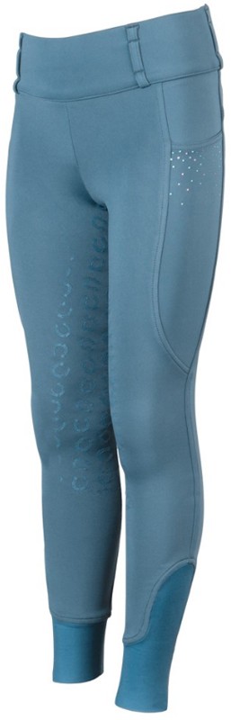 Trendy tights rijbroek voor kinderen met anti-slip zit en Stretch-beensluiting. De anti-slip zit is extra stroef en flexibel en zorgt voor extra grip en dus een stabielere zit tijdens het rijden. De EquiTights heeft een brede tailleband met riemlusjes zonder voorsluiting. Hierdoor kan de rijbroek goed aansluiten en het zorgt voor meer bewegingsvrijheid en comfort aan de voorkant. De rijbroek heeft aan de voorkant twee smartphone zakjes afgewerkt met glinsterende strass-steentjes. De twee riemlusjes aan de achterkant zijn tevens afgewerkt met glinsterende strass-steentjes. Boven het linker zakje bevindt zich een Harry's Horse-logo. De Stretch-beensluiting past optimaal om de enkel en garandeert het best mogelijke draagcomfort in rijlaarzen. Vervaardigd van 94% polyester en 6% elasthan. Machinewasbaar. Verkrijgbaar in de kleur tapestry.