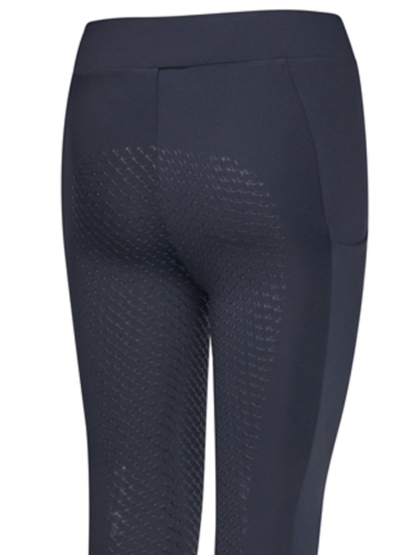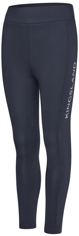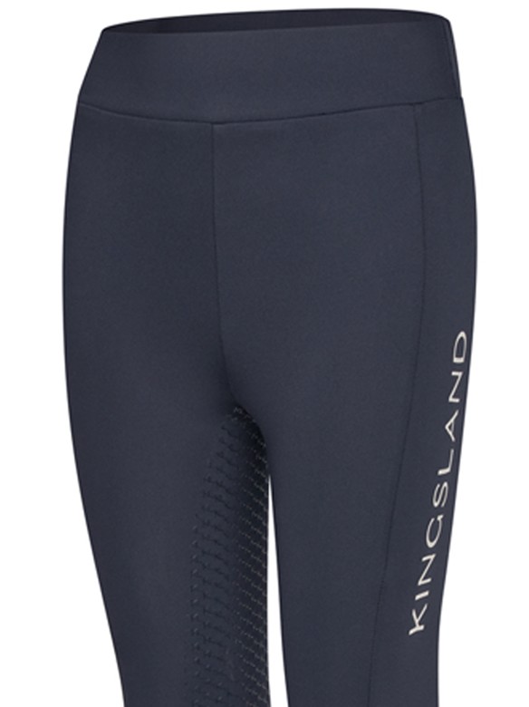 Comfortable tight riding breeches for kids with a wide waistband and anti-slip seat. The anti-slip seat is grippy and flexible, providing extra grip and thus a more stable riding position. The Lilo is stretchy, breathable and quick-drying. The riding breeches have an elastic waistband without a front closure. There is a smartphone pocket on the right thigh and a contrasting Kingsland logo on the left thigh. Made of 82% nylon and 18% elastane. Machine washable. Available in the colour navy.