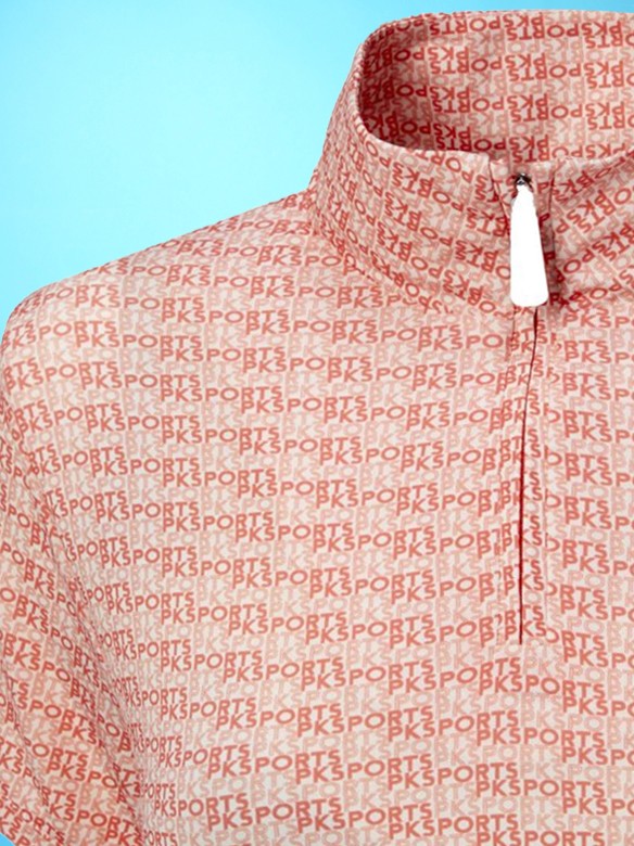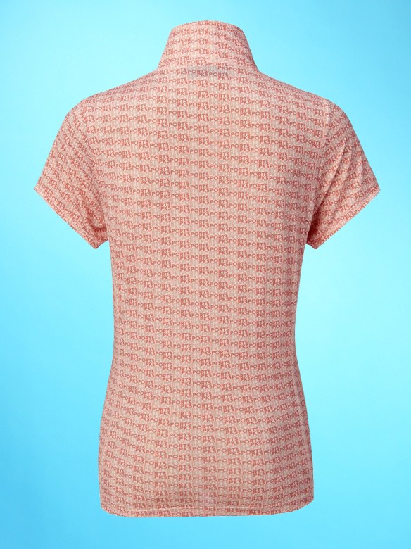 Trendy shirt made of a technical fabric with short sleeves and a short zipper at the front. The fabric is moisture wicking, quick-drying and elastic, making it comfortable to wear. The shirt has an all-over motif. This gives the shirt a fresh, trendy look. Fitted model. Made of 95% polyester and 5% elastane. Machine washable. Available in the colour fluo coral.