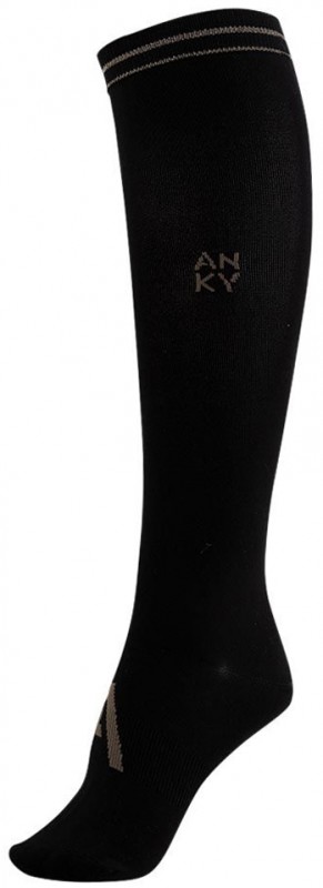 Beautiful, high-quality knee socks from Anky. These socks feature subtle, shimmering stripes at the top and an Anky logo on the calf and top of the foot. The knee socks are breathable and moisture-wicking and therefore very comfortable to wear. Made of 78% nylon, 14% lycra and 8% polyester. Machine washable. Available in the colour black.