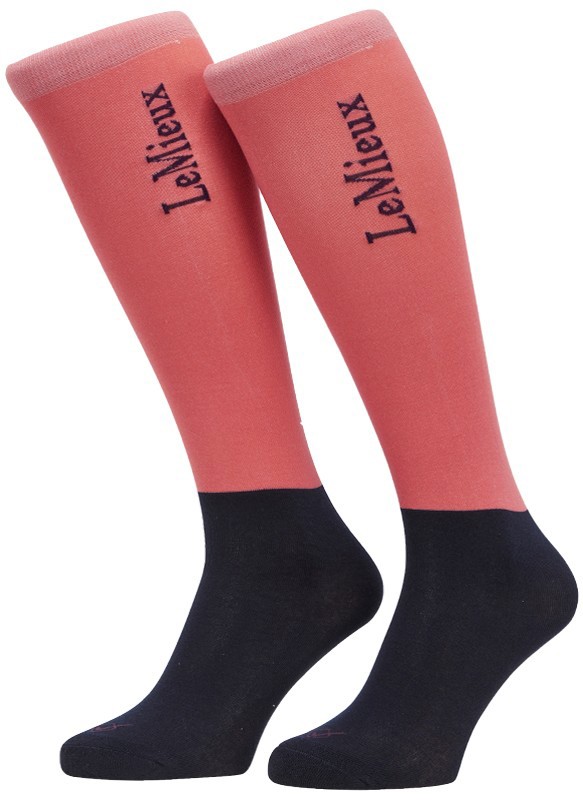 Comfortable knee socks with thin tights material around the calf. Therefore the knee socks wear comfortably in riding boots and it's easier to get in and out of the riding boots. The knee socks have a reinforced footbed and are therefore comfortable to wear. The knee socks are also soft at the ankles to prevent pressure marks. At the top is a LeMieux logo. Made of 42% nylon, 28% cotton, 28% polyester and 2% elasthan. Packed per 2 pairs. Machine washable. Available in the colour cranberry.