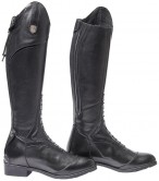 Elegant riding boots with laces on the instep. The riding boots have a dressage bow and have a slim fit around the ankles. Because of the zipper and the elastic insert at the back, these riding boots have a perfect fit. The zipper extends down to the sole. The comfortable and shock absorbing footbed make these riding boots, besides riding, ideal for everyday use in and around the stable. The zipper has a flap with press button closure at the top and at the bottom. With an anti-slip sole and a Mountain Horse logo on the side. Made of supple full-grain leather. Available in the colour black.