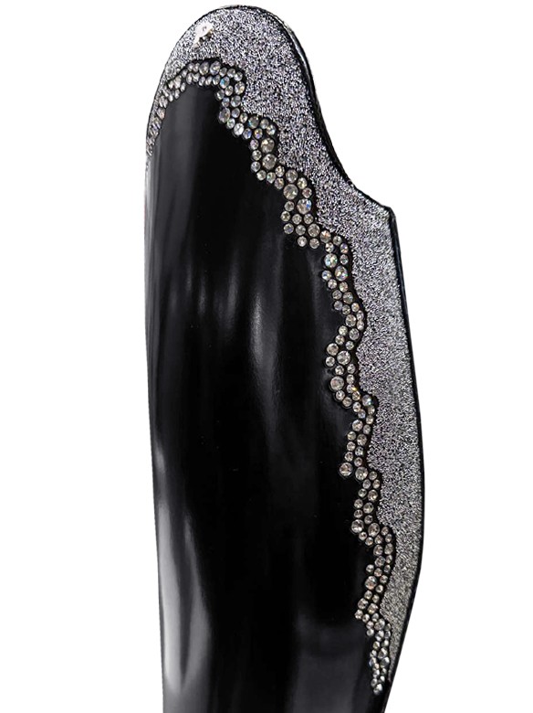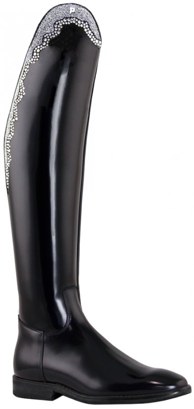 Calfskin riding boot with super stylish, silver coloured Rainfall Swarovski crystals on the bow.