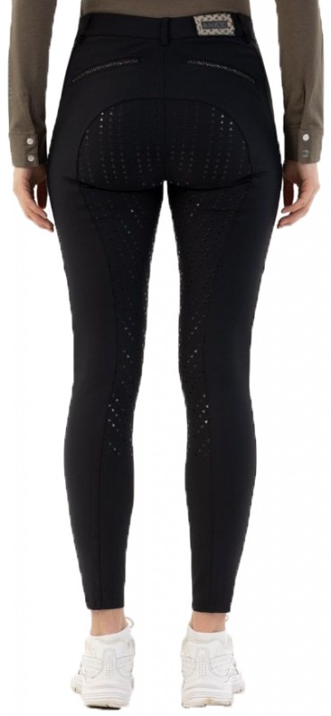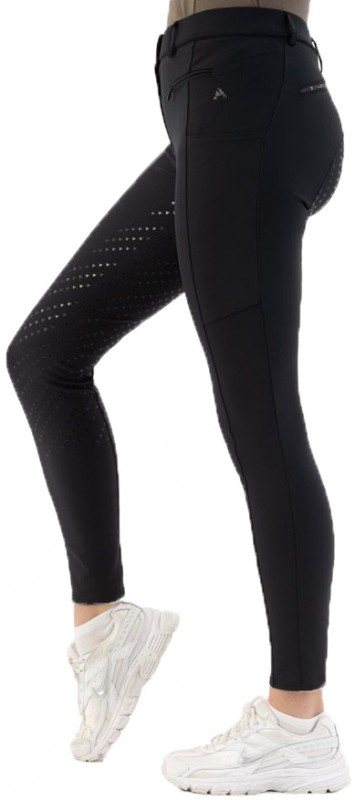 Trendy riding breeches with an anti-slip seat, smartphone pockets and glittering details. The anti-slip seat is flexible and provides extra grip, resulting in a more stable riding position. The riding breeches feature belt loops, zipped pockets at the front of which there is a glittering Anky logo made of strass stones on the left pocket, and optical pockets with glittering strass stones at the back. There is a pocket on each side of the thighs for your smartphone, for example and the right pocket features a Anky logo. The riding breeches are equipped with an Anky badge on the back waistband. The front closure has a slide button. The stretch leg closure fits perfectly around the ankle and guarantees the best possible comfort in the riding boots. Made of 76% nylon and 24% spandex, making it breathable and moisture-wicking. Machine washable. Available in the colour black.