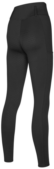 Zeer comfortabele tights rijbroek met anti-slip zit. De elastische stof is zeer vochtregulerend, ademend, sneldrogend en daardoor comfortabel in het dragen. De anti-slip zit is stroef en flexibel en zorgt voor extra grip en dus een stabielere zit tijdens het rijden. Aan de rechter zijkant bevindt zich een zakje voor bijvoorbeeld uw smartphone. De Lea heeft een glinsterend Swarovski Kingsland-logo op het linker bovenbeen en riemlussen. Vervaardigd van 80% polyester en 20% elasthan. Machinewasbaar. Verkrijgbaar in de kleur black. (31283)