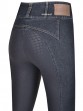 Chic model riding breeches with optical high band, elastic anti-slip seat and Stretch leg closure. The anti-slip seat is extra stiff and flexible and provides extra grip and therefore a more stable sit while riding. The material is also breathable and skin friendly. The front closure is provided with three slide buttons. The large belt loops make these riding breeches extra trendy. With Pikeur logo at the left pocket and a Pikeur badge on the waistband. The riding breeches fit just over the hip. The Stretch leg closure fits perfectly around the ankle, ensuring the best possible comfort in riding boots. Made of 77% cotton, 15% polyester and 8% spandex and therefore comfortable in all seasons. Machine washable. Available in the colour denim blue.