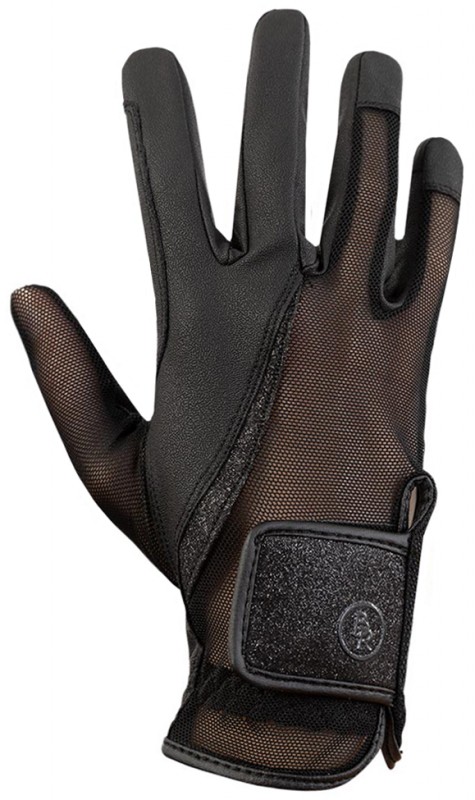 Very comfortable and light riding gloves by BR with ventilating mesh inserts on the back of the hand and an elastic insert at the wrist. The palm of the glove is made of imitation leather which ensures optimal grip. Equipped with a glittering lane along the mesh and a glittering velcro closure with BR logo. he thumb and index finger are smartphone compatible. Packed per pair. Machine washable (30°C). Available in the colour moonless night.