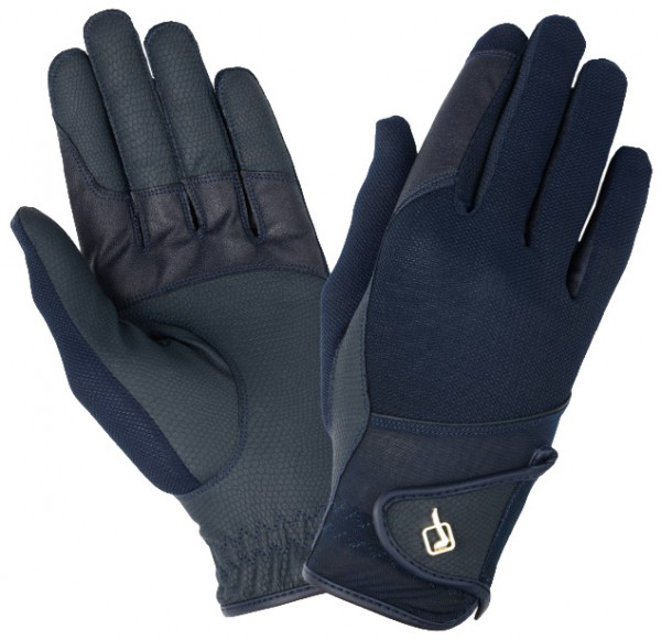 Very comfortable and light riding gloves by LeMieux with back panel of mesh. The elastic back ensures a perfect fit and feels cooling. The anti-slip imitation leather in the palm of the hand provides optimum grip. Equipped with velcro closure with LeMieux logo. Packed per pair. Machine washable (30°C). Available in the colour navy.