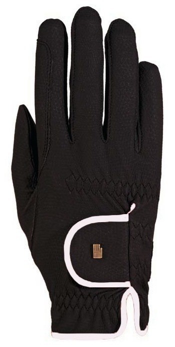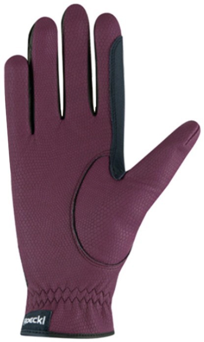 Imitation leather riding gloves with a perfect fit. With elastic inserts on the back of the hand and at the wrist. The palm of the riding gloves is made of anti-slip material. With velcro closure. Packed per pair. Machine washable (30°C). Available in the colour combinations black/white, navy/silver, mocha/gold and grape wine/black. (3301-336)