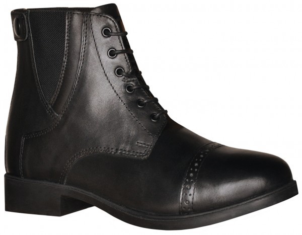 Comfortable leather stable and riding shoe with laces and zipper at the back. Available in the colour black.