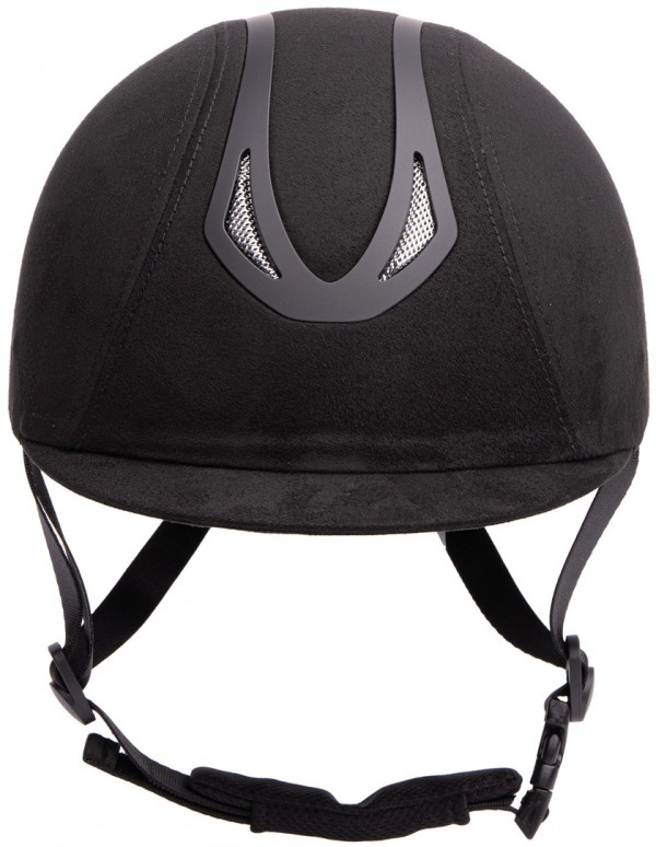 Lightweight riding helmet with a micro suède finish. The riding helmet has ventilation holes at the front and the top, which provide cooling while riding. The riding helmet meets the European EN 1384:2023 requirements, meaning that the riding helmet meets the safety requirements. The head strap is adjustable by means of an adjustment wheel, ensuring that the riding helmet will fit everyone. The riding helmet is provided with a lined chin strap and ventilation holes on top. The lining is easily removable and is machine washable. Available in the colour black.