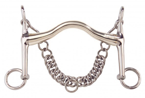 Absoluut de meest zachte dressuurstang die op dit moment verkrijgbaar is! Deze stang is geheel anatomisch gevormd naar de paardenmond. De stang heeft veel tongvrijheid, zorgt voor een zeer goede drukverdeling over de tong en geeft geen druk op de gevoelige tongranden en de lagen. Het paard wordt hierdoor gestimuleerd om het bit aan te nemen en tongproblemen, zoals bijvoorbeeld de tong over het bit gooien, worden nagenoeg verholpen. De anatomische vormgeving (de stang is licht naar voren gebogen) zorgt daarnaast voor een zeer stille ligging in de mond en voorkomt dat de stang het gehemelte kan raken. Ideaal voor de overstap naar stang en trens en voor gevoelige paarden! Inclusief kinketting. Het mondstuk is 14 mm dik. De extra korte scharen, met een onderlengte van 5 cm, zorgen ervoor dat de hulpen van de stang een mindere zware inwerking in de mond hebben. Verkrijgbaar met Sensogan mondstuk en roestvrijstalen scharen. (42-119-…-78)
