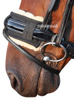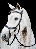 Bridle with extra anatomical cut-out at the noseband and a pre shaped head piece. Available in the colour black.