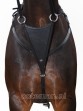 Voortuig gemaakt van sterk en soepel leder. Een voortuig wordt gebruikt om het zadel een stabiele ligging te geven. Het voortuig is voorzien van een afneembare martingaal. De martingaal zorgt ervoor dat het hoofd niet te hoog/omhoog gehouden kan worden. Het voortuig wordt met een singellus of de musketonsluiting aan de singel bevestigd. De riem naar de singel is ruim in maat verstelbaar. De schouderriemen met gespsluiting lopen vanaf de borst naar de schoft en zijn voorzien van een elastisch gedeelte voor extra comfort en bewegingsvrijheid. Het voortuig wordt met deze schouderriemen bevestigd onder het rokje van het zadel. Deze worden bevestigd door middel van de verstelbare gespsluiting of de musketonsluiting. Voorzien van roestvrijstaal beslag. Wordt geleverd met een open en een gesloten martingaalvork. Verkrijgbaar in de kleur black.
