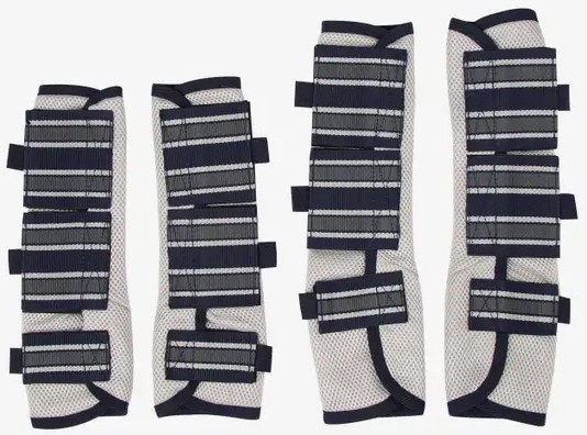 The LeMieux Fly Boots are leg protectors made of highly breathable 3D mesh. 3D mesh optimally protects your horse's legs against overheating, insects and the sun. The edges of the leg protectors are provided with fleece to prevent chafing. The fleece also ensures that flies and insects do not enter the leg protector. Ideal to use in the yard, paddock and stable. Packed per pair. Machine washable. Available in the colour silver with details in the colour navy/silver.