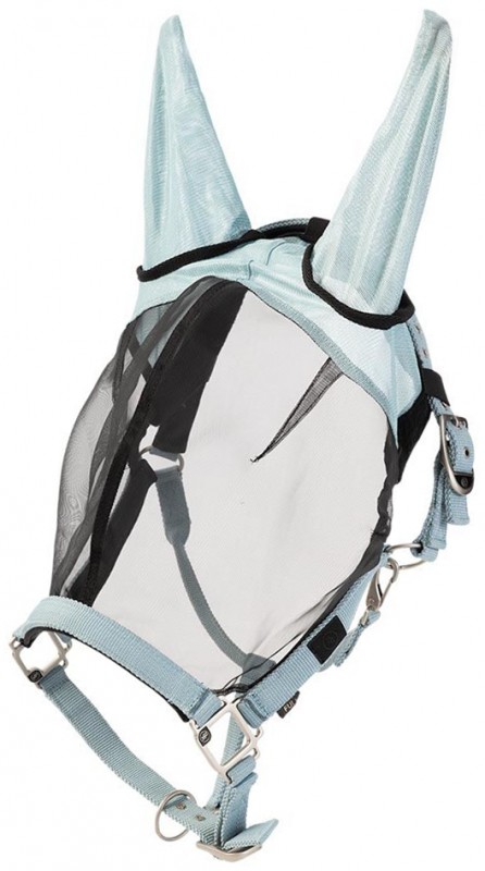 Comfortable nylon headcollar with a transparent, fine-meshed anti-fly mask of polyester mesh attached to it. The mask is fly-resistant. The headpiece, cheeks and noseband are lined with a soft lining of neoprene. The headpiece and noseband are adjustable with buckle closures and the throat strap has a clip. The headcollar is provided with a BR logo on the left side on the cheekpiece. Available in the colour tourmaline.