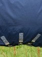 Water- and windproof turnout rug with 250 grams filling and with a detachable neck piece. The turnout rug is made of strong 1000 Denier polypropylene and is lined with smooth nylon. The outer fabric is extra strong, durable and has an extra breathable layer to keep your horse dry. The anti-bacterial inside is smooth, preventing the fur from damaging. The special thermo-fibre filling has very good insulating properties and is lightweight. The turnout rug is made according to the Vari-layer concept, meaning that the back part has a 250-grams thermo-fibre filling and the sides a 100-grams filling. Because of this, the rug is lightweight and nicely warm while also being very comfortable for your horse. The front closure is equipped with a V-front closure to ensure a good fit. The Rhino Plus has three cross surcingles, a tail flap, reflecting details and an elastic leg strap with smooth outer fabric made of PVC for easy cleaning. Because of the good fit and the cut-outs for the legs, the rug will remain in the right position, providing your horse with a lot of freedom of movement. The turnout rug has rings to attach a Horseware Under Rug Liner to. Ideal rug for in the meadow or in the stable. Machine washable. Available in the colour navy with piping in the colour titanium/classic blue. (AABPV3-BJD0)