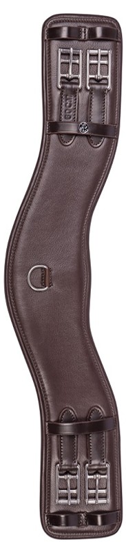 Soft, pre-shaped dressage girth for more freedom of movement and with elastic on both sides. Available in the colour dark brown.