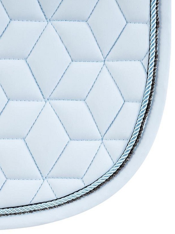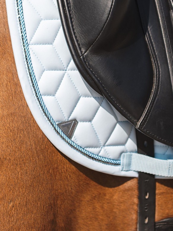 Anatomically shaped saddle pad with a quick-drying, moisture-wicking Cooldry lining. The saddle pad features stylish cord piping and a subtle, shimmering binding. A girth loop at the bottom ensures stability. Machine washable. Available in the colour nantucket breeze. (XB261112)
