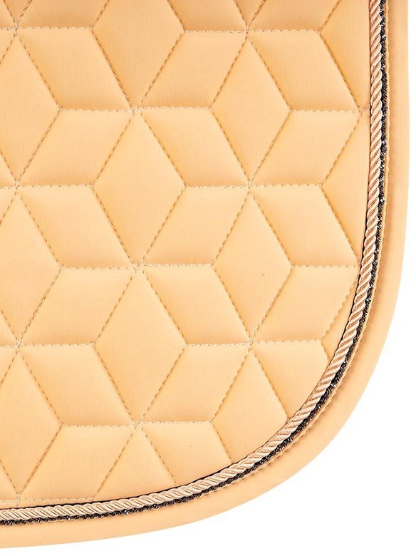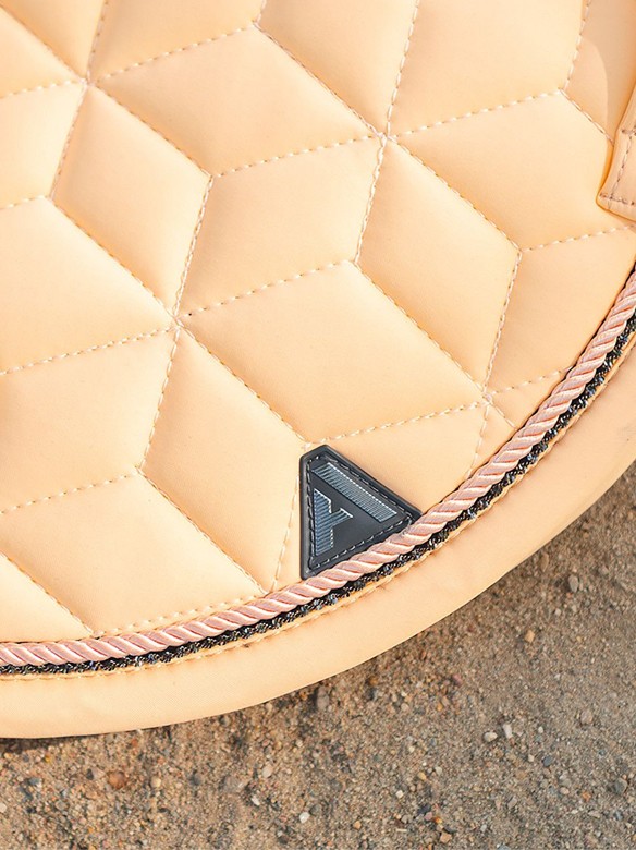 Anatomically shaped saddle pad with a quick-drying, moisture-wicking Cooldry lining. The saddle pad features stylish cord piping and a subtle, shimmering binding. A girth loop at the bottom ensures stability. Machine washable. Available in the colour peach fuzz. (XB261112)