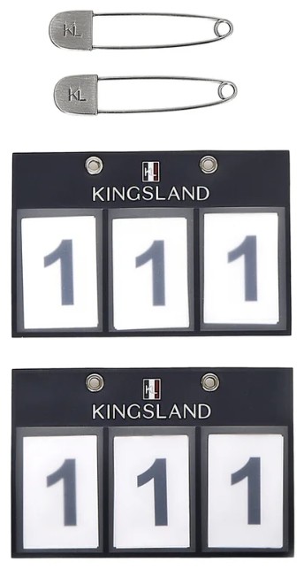 2-Pack competition numbers which are easy to attach. The holder is fitted with two ring holes for the included safety pin. Three numbers can be placed on the competition numbers. With Kingsland logo. The dimensions are 12 x 8 cm. Available in the colour navy with navy numbers. (1000409805)