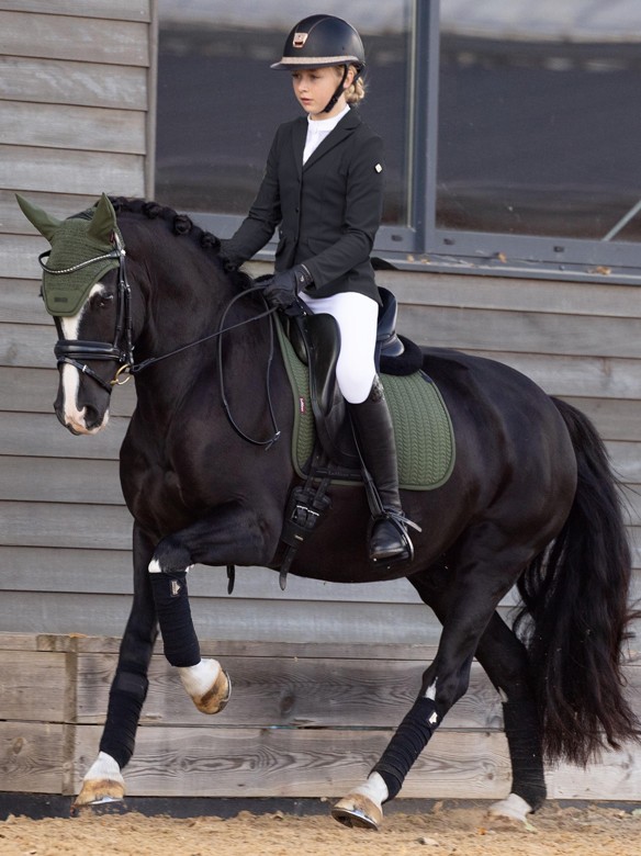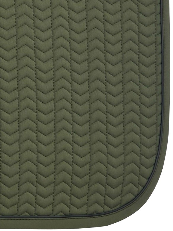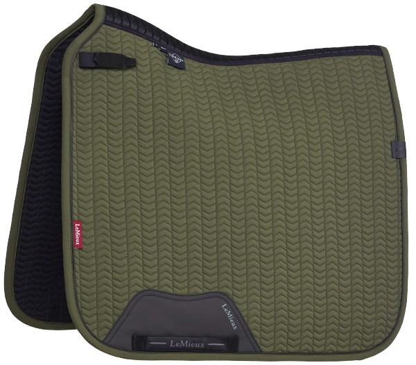 Luxury, cooling saddle pad with a nice quality softshell outside. The Essence has an inside of Self-Cool material. This allows the saddle pad to cool itself through moisture, i.e. sweat from the horse. Self-Cool Ice material is also incorporated into the filling. These are tiny crystals that can absorb moisture very well and convert it into cooling. The more moisture they absorb, the cooler the saddle pad becomes and this provides extra comfort for your horse during work. The carbon mesh back seam provides good ventilation and prevents pressure on the back and withers. The saddle loop has a velcro closure. At the girth loop, the saddle pad has an insert of imitation leather with a LeMieux logo for extra reinforcement. An ideal saddle pad at high temperatures and for horses that sweat a lot during work. Machine washable. Available in the colour pine green.