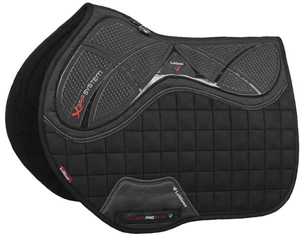 Anatomically shaped saddle pad made of good quality suede. On the place for the saddle, the saddle pad is fitted with the X-Grip System. The X-Grip system is made up of an insert with transparent anti-slip patches for a steady placement of the saddle. Furthermore, the saddle pad is filled with memory foam on the place for the saddle for optimal shock absorption. There is an insert of nylon with an embroidered LeMieux logo at the loop for the girth for extra reinforcement. The soft lining of bamboo reduces the friction and has good moisture wicking properties. The lining also has an anti-bacterial and anti-static effect and helps to prevent unpleasant smells. Machine washable. Available in the colour black.