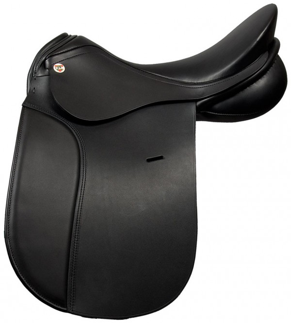 Comfortabel KN dresuurzadel in model Symphonie met een zachte en diepe zit. Voorzien van een medium boom, lange stoten en gestikt kussen aan de voorkant. Verkrijgbaar in de kleur black en maat MK2 45 17.5".