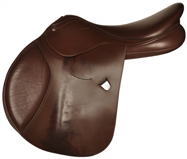 Used jump/eventing saddle with an exchangeable gullet and seat size 17.5". The front gullet is easy to exchange (Easy-Change) for a different size by means of screws. This allows the saddle to be adjusted at any time to the horse's back for the optimal position. The Bates Momentum has a soft, slim seat and knee pads. The seat is flat and has a straight back. The knee and calf rolls are easy to move by means of velcro for optimal support for your leg. The soft cushions are made according to the CAIR Cushion System and are therefore extra comfortable for horse and rider. The saddle has three short girth straps. Available in the colour brown.