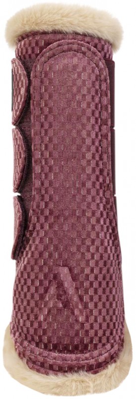 Luxe beenbeschermers van velvet voor de voor- en achterbenen. De beenbeschermer heeft een goed ventilerende voering van schokabsorberend en geperforeerd neopreen. De rand van imitatie-bont is extra zacht en de klittenbandsluitingen zijn afgewerkt met elastiek. Met Anky-logo op de klittenbandsluiting. Per paar verpakt. Machinewasbaar. Verkrijgbaar in de kleur mellow mauve.