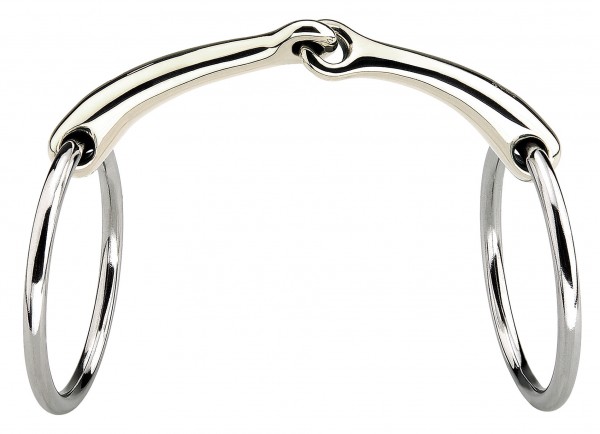 Enkelgebroken watertrens met het Dynamic RS mondstuk voor een betere aanleuning. Door de ergonomische vorm van het mondstuk ligt dit bit zeer goed in de mond. De druk in de mond wordt gelijkmatig verdeeld over de tong en de tongranden waardoor het kauwproces optimaal wordt bevorderd. Hierdoor wordt het paard gestimuleerd om het bit aan te nemen en aan de teugel te blijven. Het bit heeft een zachte, maar effectieve inwerking. De dikte van het bit is 14 mm. De ringen hebben een diameter van 55 mm. Verkrijgbaar met Sensogan mondstuk en ringen van roestvrijstaal (bicolor). (40-215-…-78).