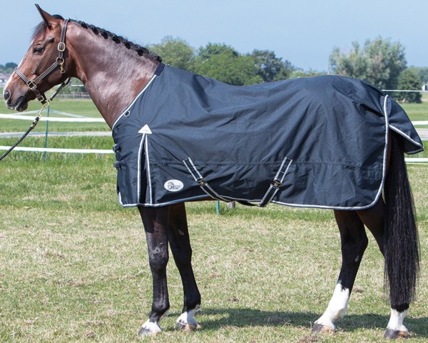 Waterdichte, 0-grams regendeken met een 600 Denier polyester ripstop buitenstof. De deken heeft een verstelbare, dubbele borstsluiting met musketons en een zacht schoftbontje. De Thor is voorzien van loopsplitten, afneembare elastische bilkoorden, een staartflap en kruissingels. Verder heeft de regendeken een contrasterende bies en een Harry's Horse-logo naast de loopsplit. Ook geschikt voor op stal. Machinewasbaar. Verkrijgbaar in de kleur ebony. (32200615)
