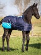 Waterdichte winterdeken met 200 grams vulling, speciaal voor veulens. De deken heeft een sterke 600 D buitenstof en een staartlus. De voorsluiting en de buikflap zijn ruim verstelbaar door middel van een klittenbandsluiting. De onderlengte kan worden aangepast van ongeveer 75 cm tot en met 95 cm met behulp van de klittenbandsluiting aan de voorkant. De TwoTone heeft een ruglengte van 65 cm en is ook geschikt voor op stal. Machinewasbaar. Verkrijgbaar in de kleur navy/blue.
