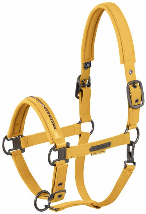 Luxe en sterk halster uit de Platinum-collectie van Eskadron. Het halster is bekleed met softshell en is voorzien van parels voor een stijlvolle uitstraling. Verstelbaar onder de neus en op het hoofd d.m.v. gespen en de keelriem is voorzien van een clipsluiting. Het halster heeft een zachte voering. Verkrijgbaar in de kleur golden yellow.